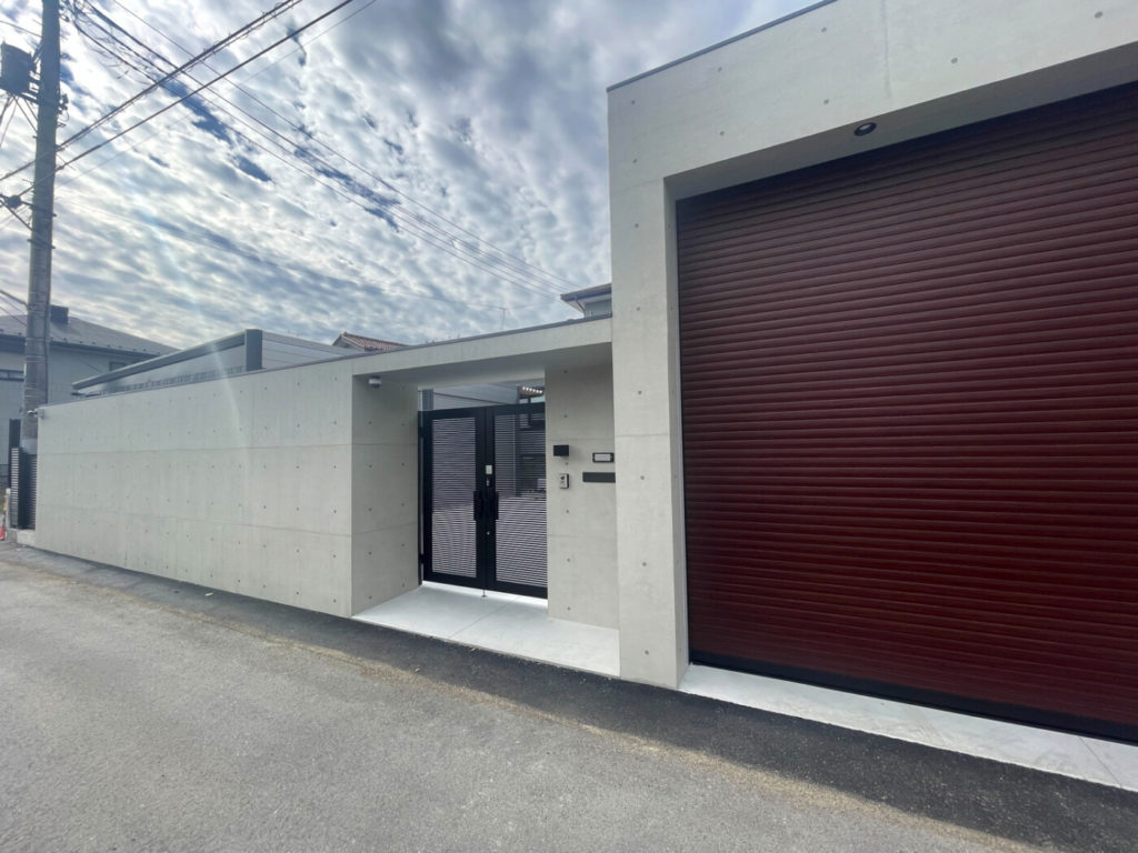 重厚感と高級感を演出するRC調仕上げの塀/シャッターゲート